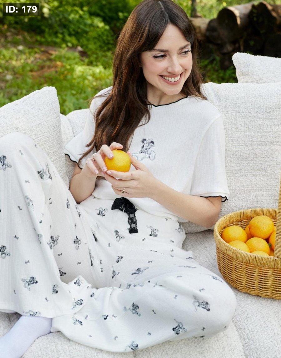 סט פיג'מה מכופתרת לבן מיקי
