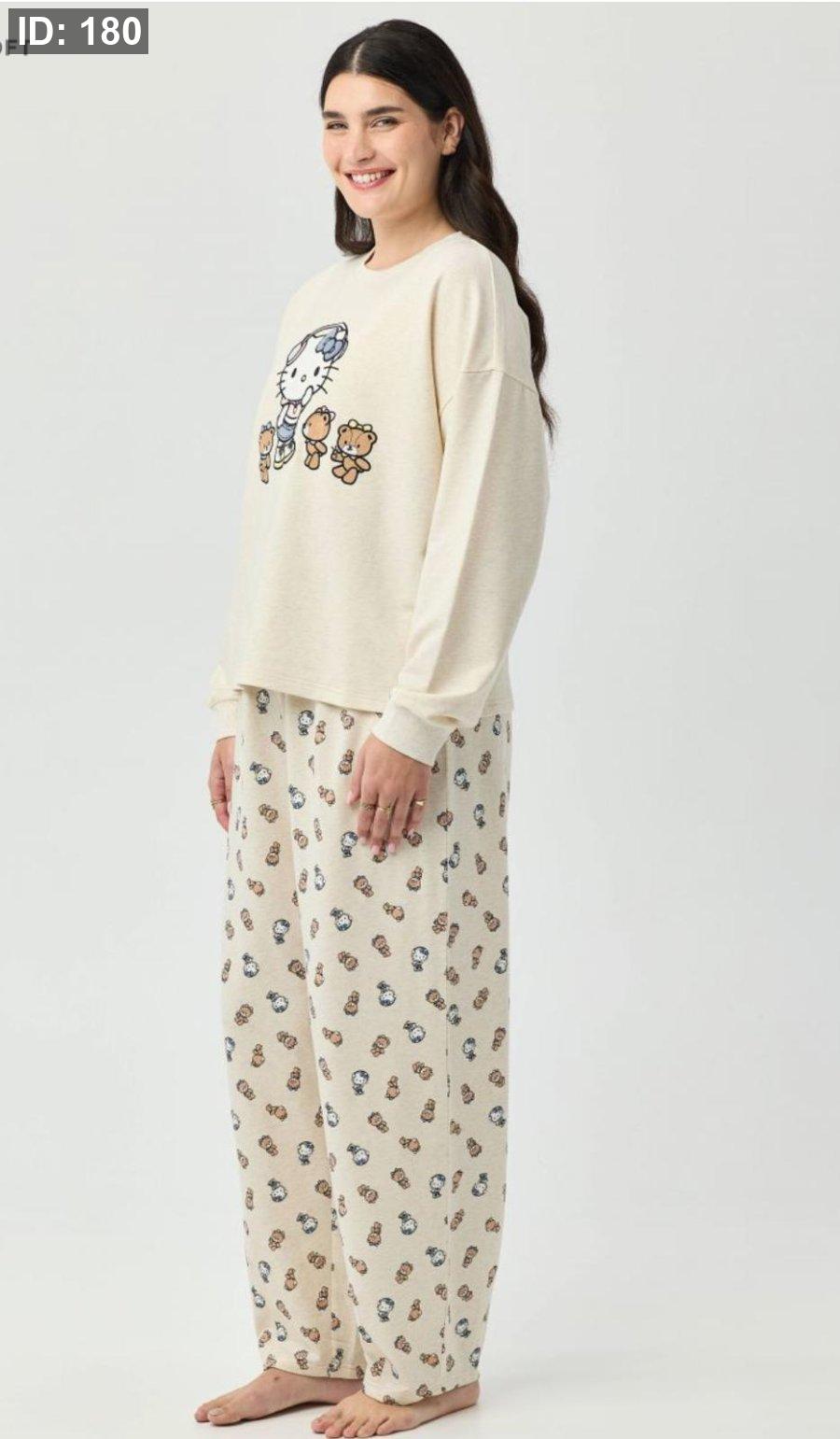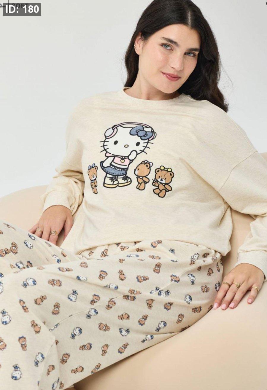 סט פיג'מה ארוכה פרנץ' טרי Hello KITTY