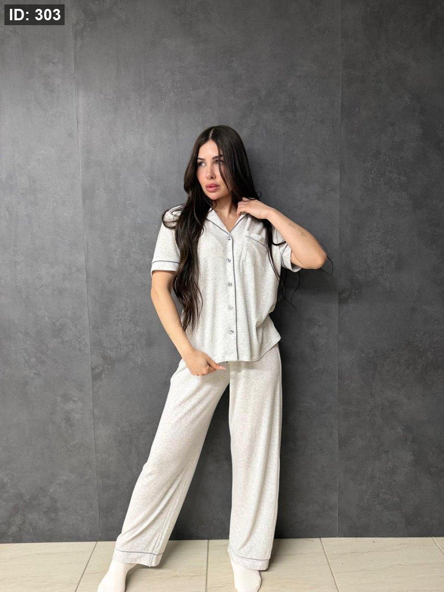 סט פיג'מה מכופתרת עם דפוס
